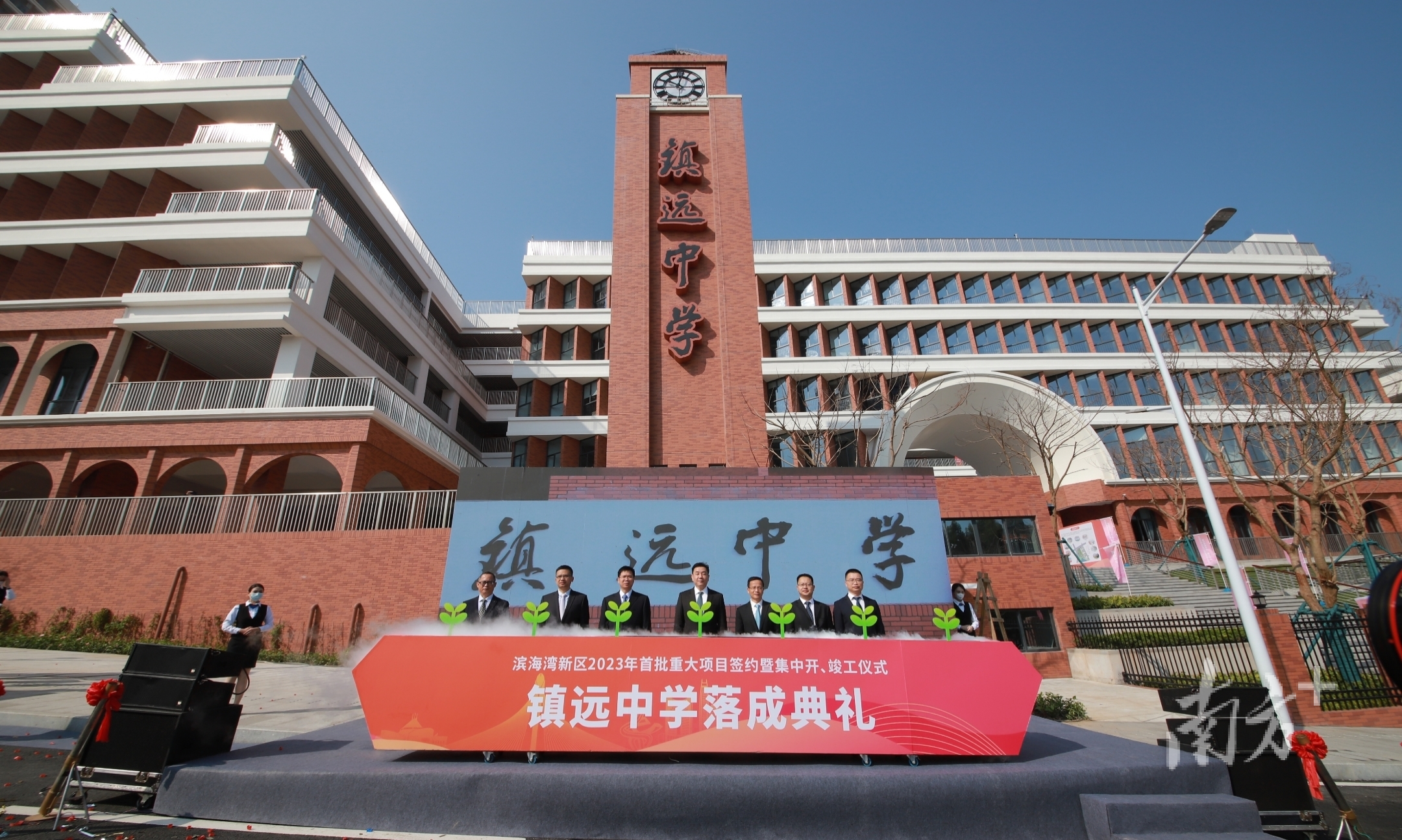 岭南春来早,人勤春更早。2月28日上午,“构建新发展格局 推动高质量发展”滨海湾新区2023年首批重大项目签约暨集中开、竣工仪式在滨海广场项目举行,并在威远岛镇远中学、东湾大道(交椅段)设分会场分别举行学校落成、通车典礼。