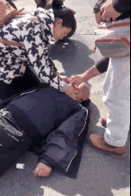 跪在马路边对吴师傅进行抢救