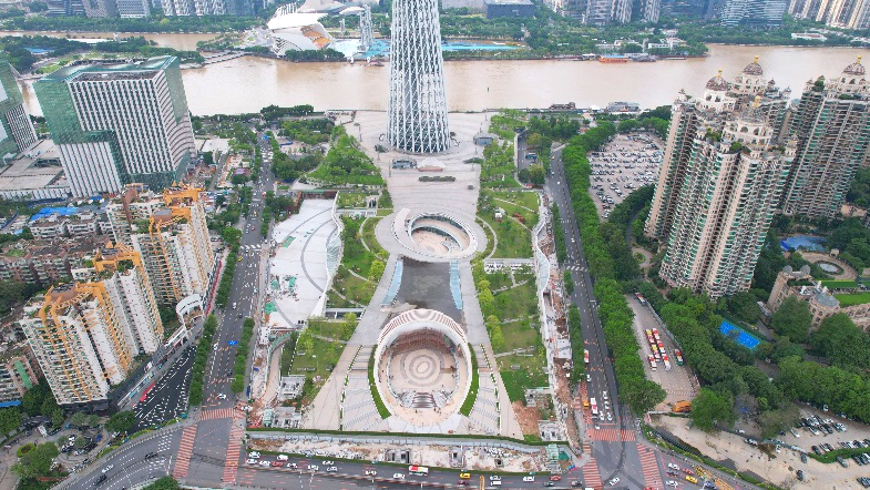 广州塔广场施工正在如火如荼地推进中,目前,广州塔广场的主要入口,东广场及西广场已经基本搭建完成。项目外观已现雏形,商业空间即将在2024年底对外迎客。