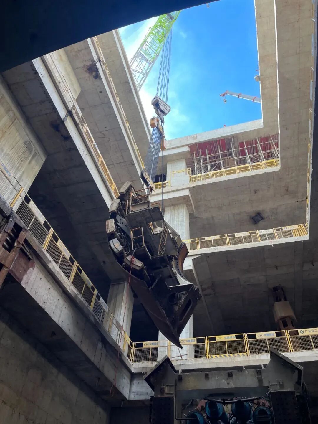 针对始发段隧道拱顶存在较厚软弱砂层,且下穿河涌的困难,建设者们在盾构始发阶段就多次组织内外部专家进行反复论证,通过优化盾构配置和施工方案,始发段增设外挂泥水循环系统,配置超前注浆系统对掌子面前方的软弱地层进行加固处理,实现了软弱地层中的盾构安全掘进和开仓作业。