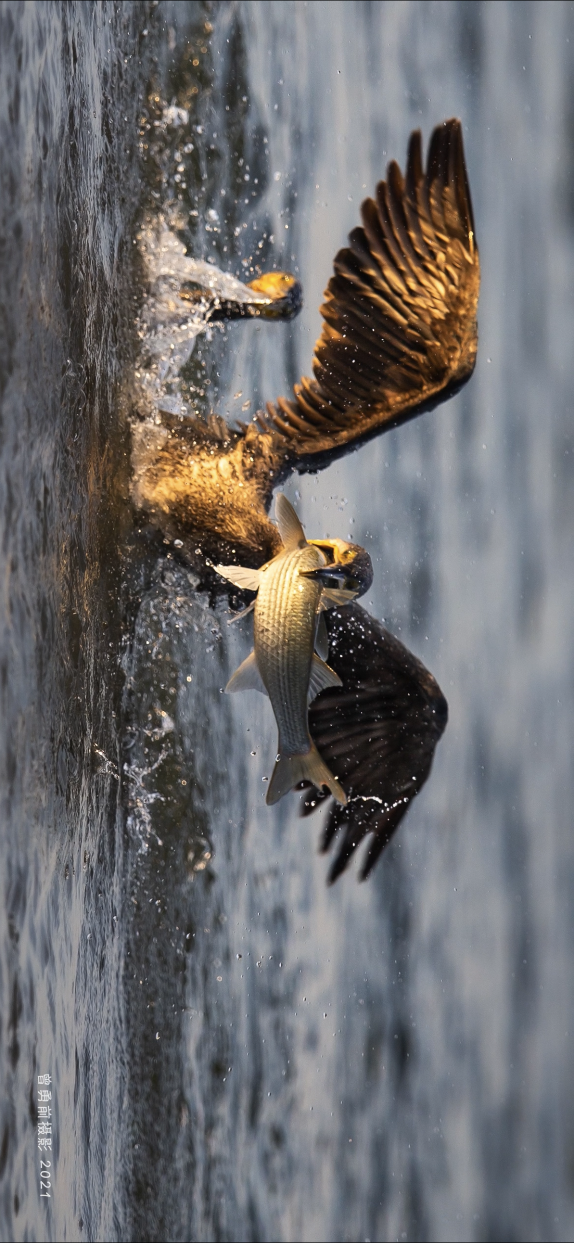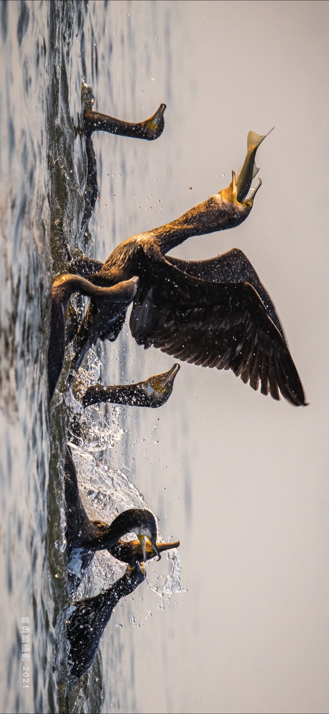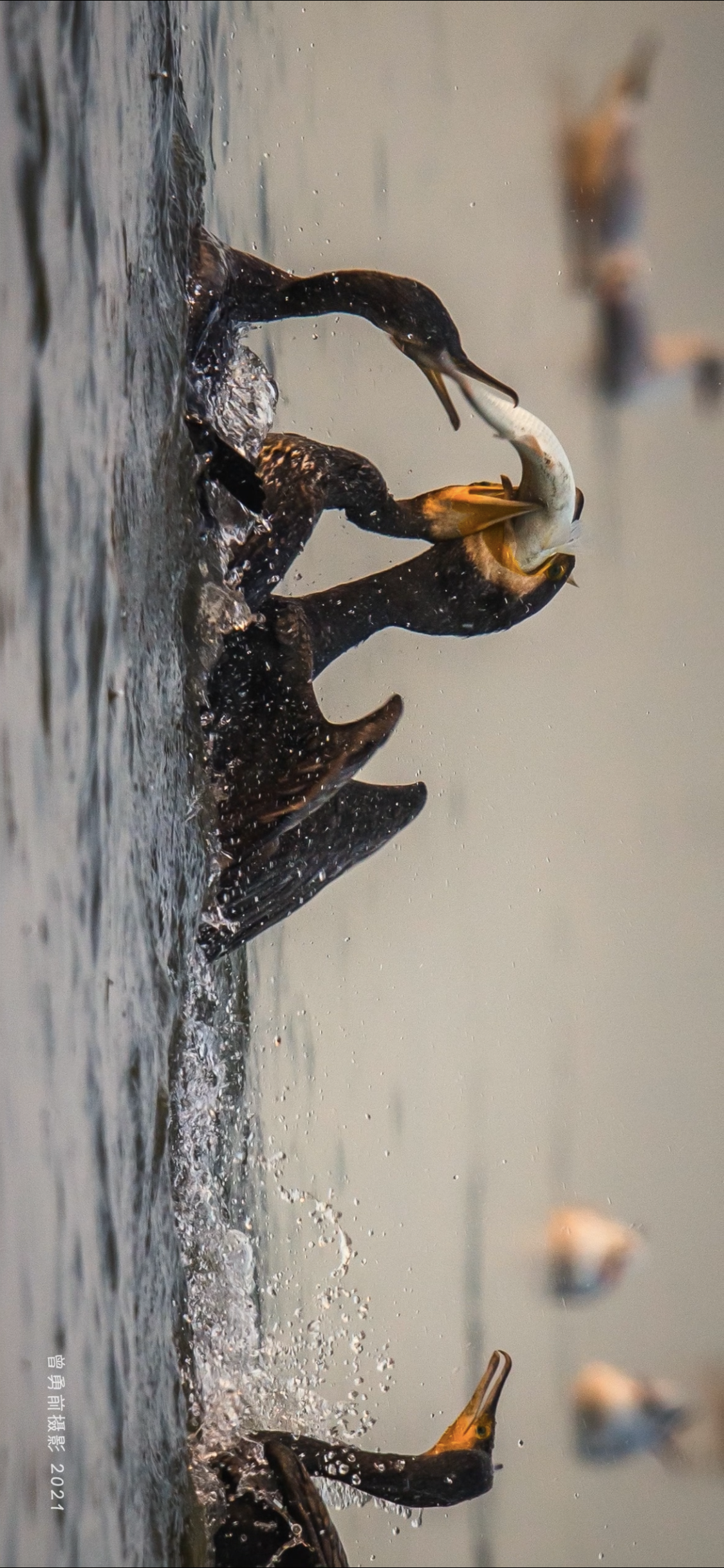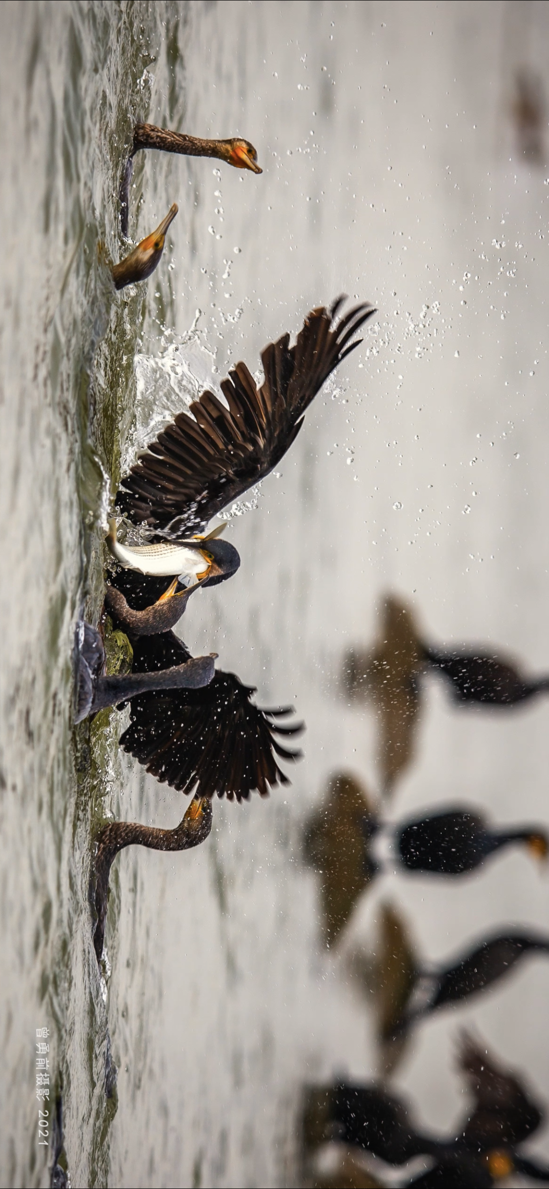 “那群鸬鹚一开始在海中间漂浮着,突然有只领头鸟开始起飞,黑压压的鸟群瞬间扑面而来。”由于鸟群越飞越近,曾勇前一开始用专业长焦距“大炮”只能拍到几十只,他灵机一动,赶紧拿出手机,打开广角镜头,完整地捕捉到了这一幕。“这些鸟先是贴着水面飞,然后绕过栈桥 ,又飞到桥头 ;紧接着,它们调转方向,飞向‘春笋’大厦 ,不一会儿,又飞到海中间。在飞到桥头的一瞬间,它们离我很近,为了完整地记录万鸟齐飞的画面, 我换了四个角度才拍到了全貌。”说起拍摄过程,曾勇前仍兴奋不已。