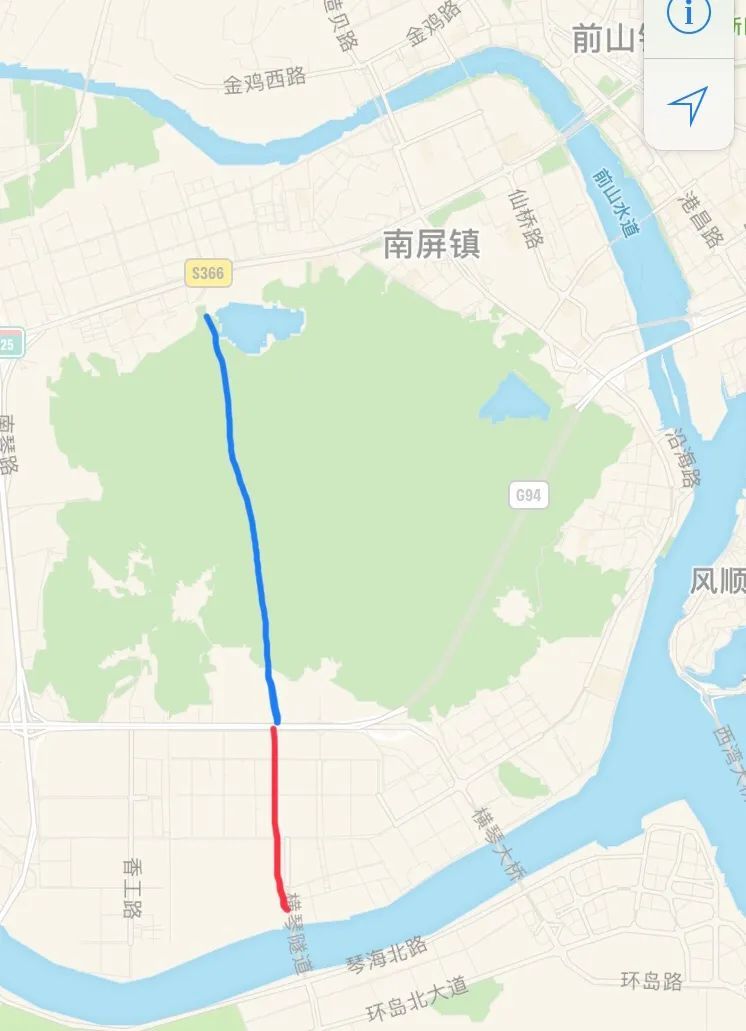 (▲灵魂画手小布再次上线,蓝色线路是黑白面将军山隧道;红色线路是横琴隧道至黑白面将军山隧道新建工程;图示仅供大致参考,具体以实际建设线路为准。)