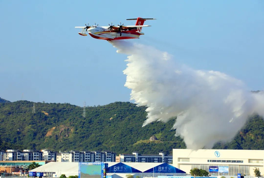 第十四届中国航展上,“鲲龙”AG600M进行飞行投水表演。张洲/摄
