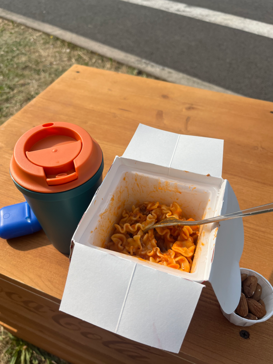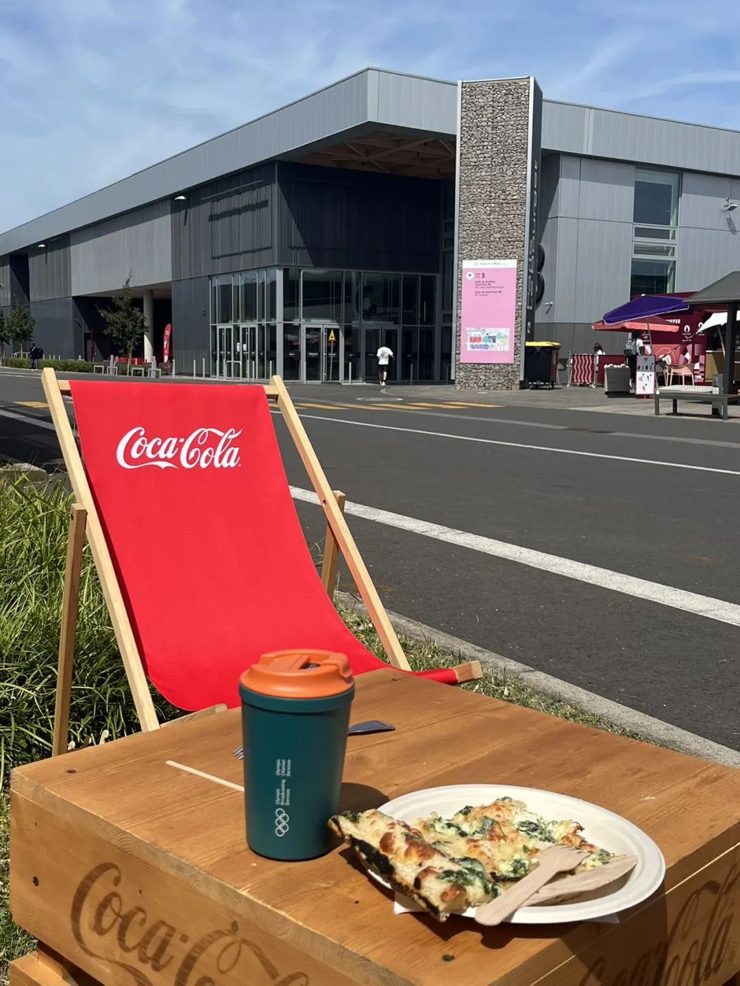 午休时间,小琳会和同事们在场馆一起吃饭、聊天,“欧洲人吃饭比较随意,大部分就是热狗、汉堡、碱水面包、薯条之类的,我们工作场馆有三个自助食堂,如果爱吃中餐朋友应该不太习惯。”她给小布分享了自己的工作餐,在阳光灿烂的空地上,一把沙滩椅、一盒蕃茄酱通心粉、一块披萨、一杯咖啡,她笑说:“还挺好吃的!”