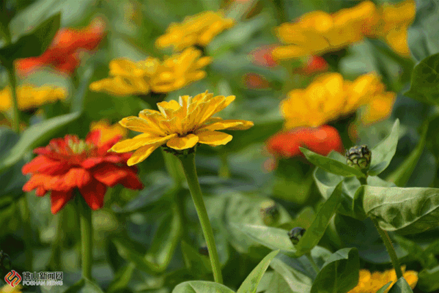 远远望去,成片的百日菊错落有致,迎风摇曳,宛如一幅迷人的五彩画卷,又似色彩炫丽的绸缎,浪漫唯美~