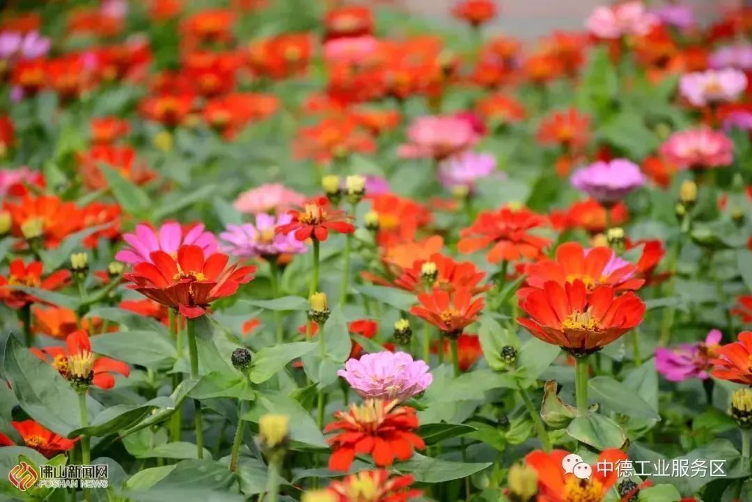 在佛山新城莲韵花海处,一大片百日菊相继开放,红的、黄的、紫的、白的、粉的……五彩缤纷惹人醉,免费等你来~