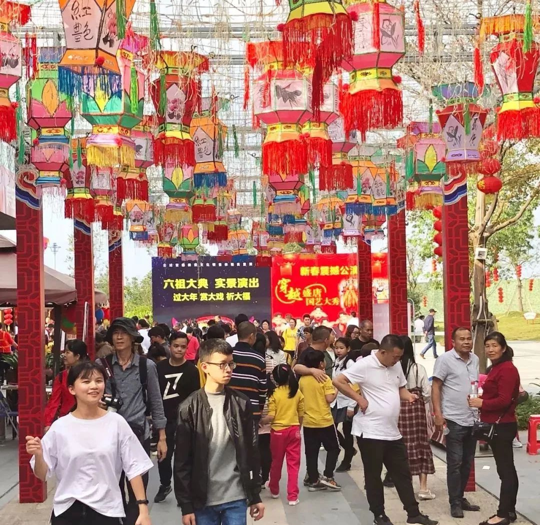 在云浮市新兴县六祖镇六祖大道侧,距六祖故里旅游度假区6公里有一个禅域小镇。新年过大年,禅域小镇张灯结彩连成一线,人声鼎沸、好戏连台。
