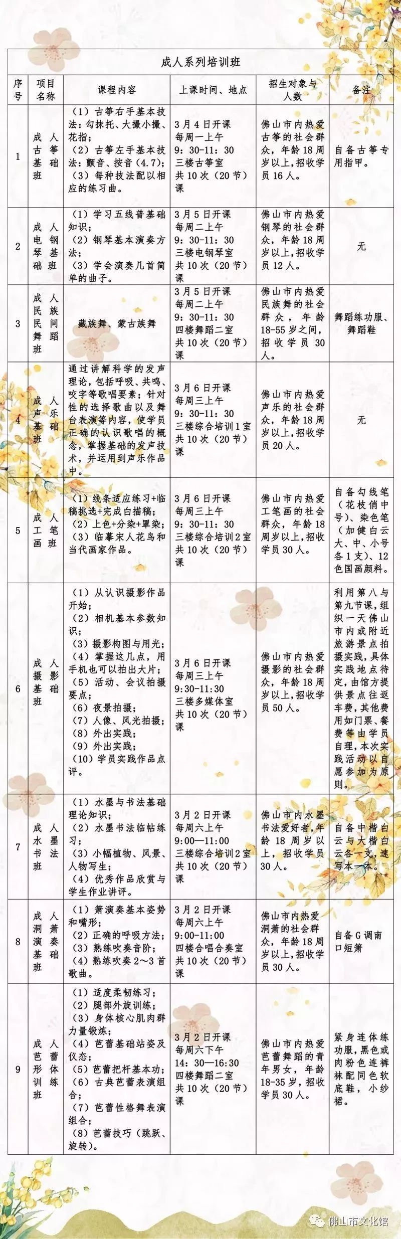 入选学员名单将根据报名情况统一于2月26日下午15点,在佛山市文化馆微信公众号上公布,同时以短信方式通知到各位学员。