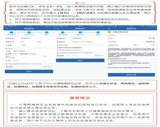 如“交管12123手机APP”之期满换领驾驶证流程图解如下: