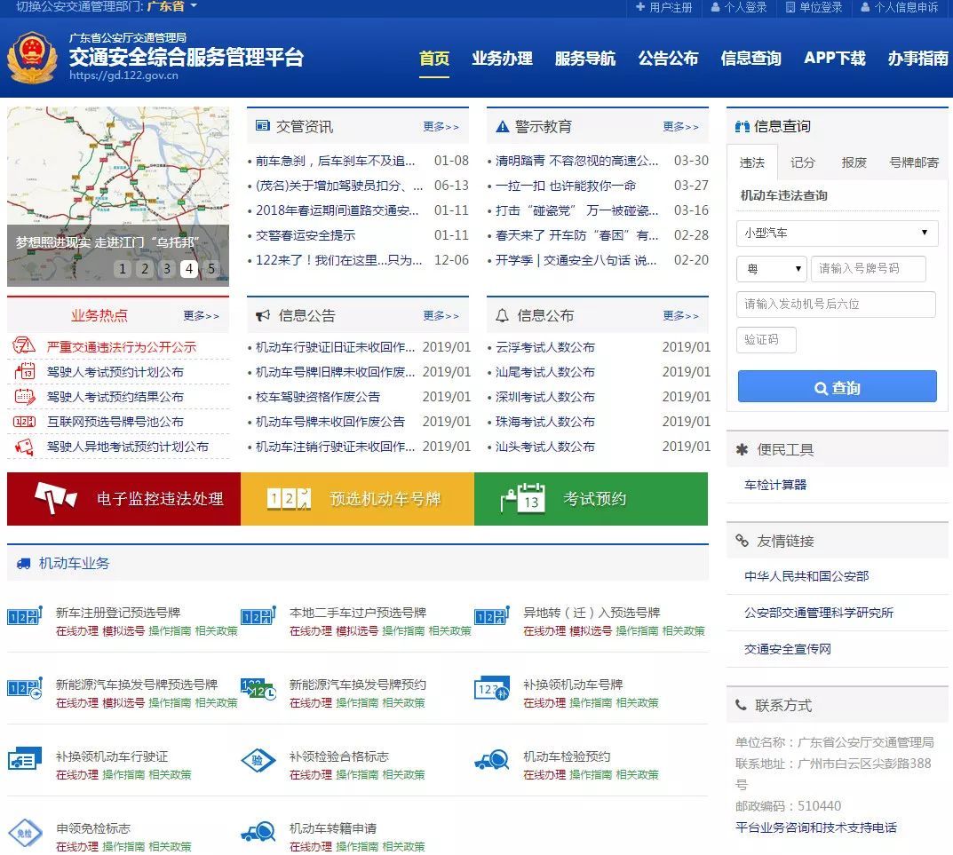 ▲广东省公安厅交通管理局互联网交通安全综合服务管理平台