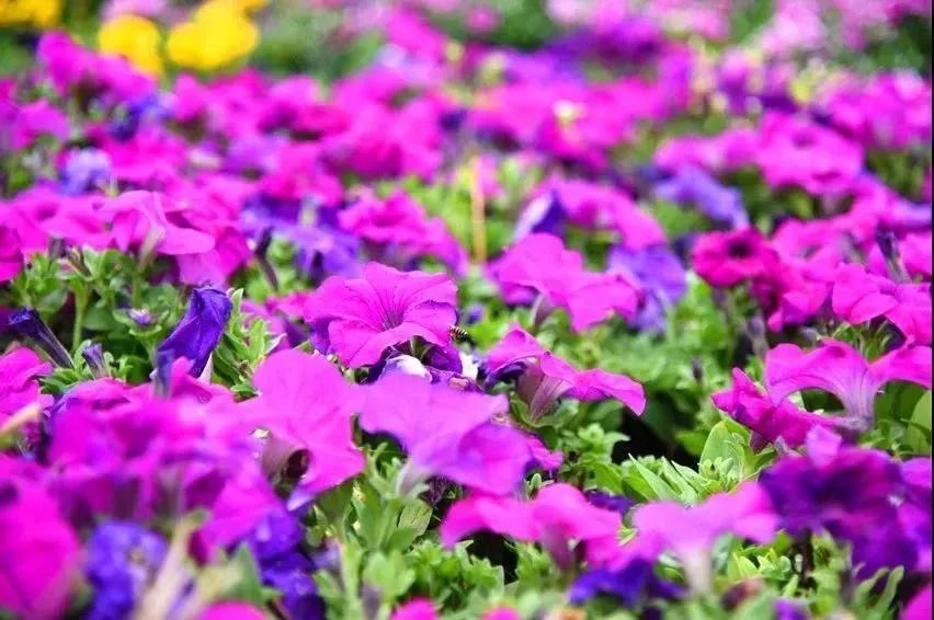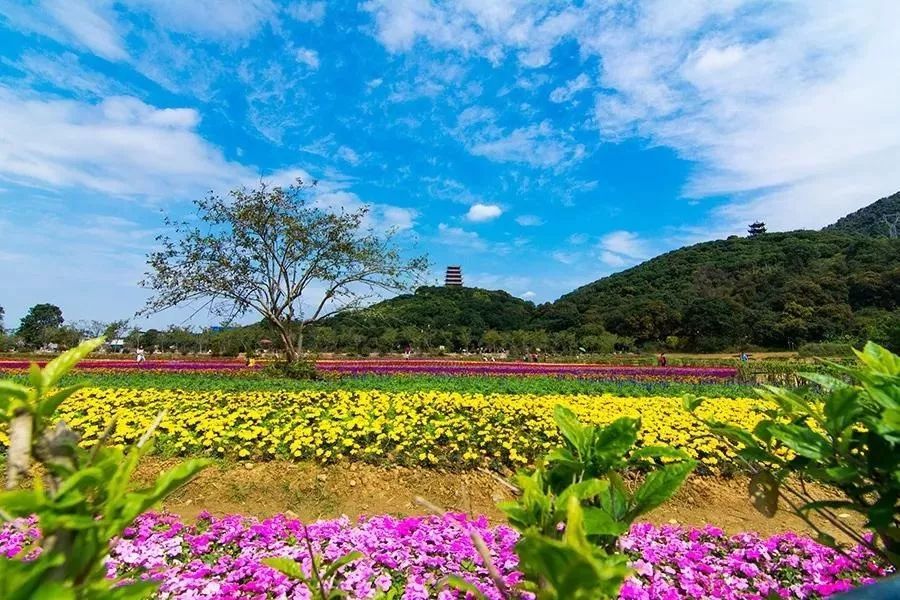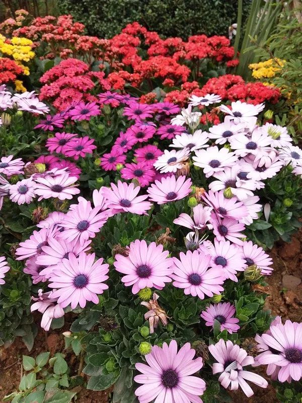 孔雀草、三色堇、一串红、格桑花、旱金莲、四季海棠、太阳花、波斯菊、薰衣草、荷花、紫荆花、牡丹、桃花等各种各样的花卉竞相盛开…