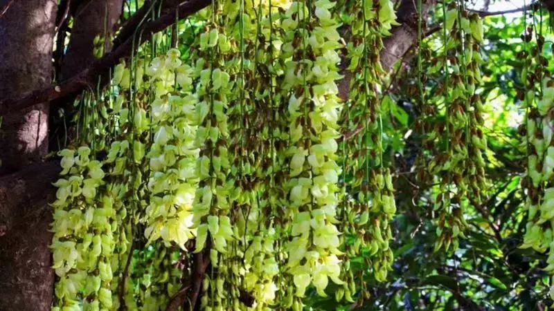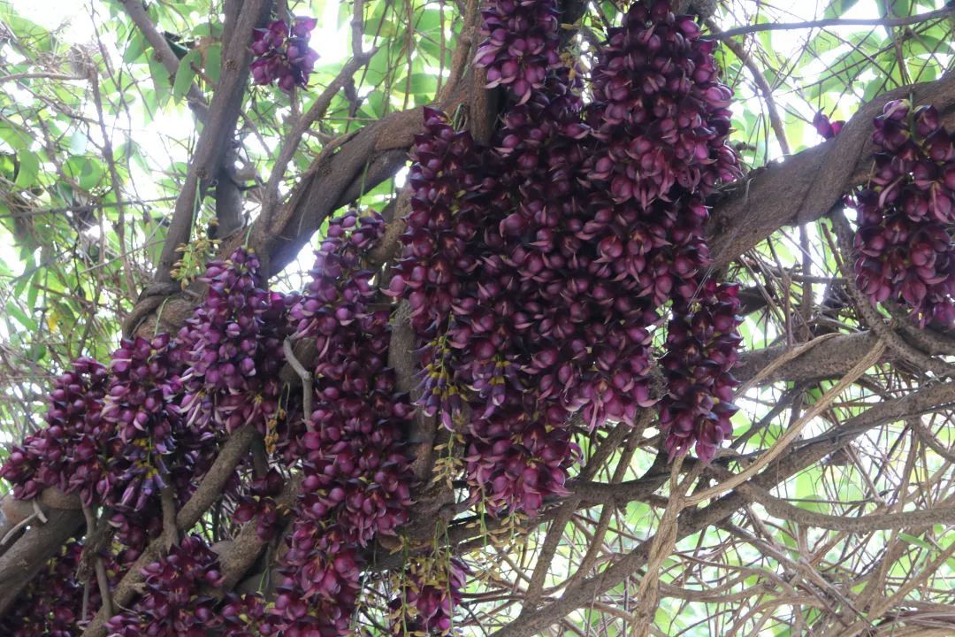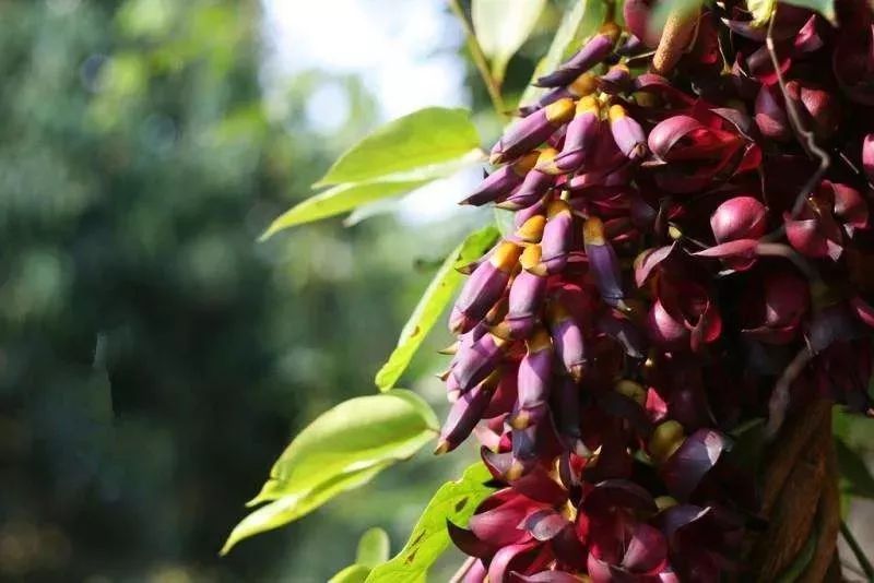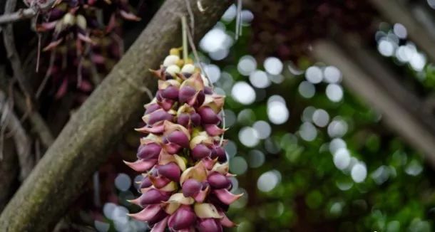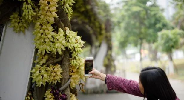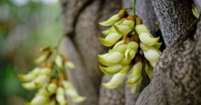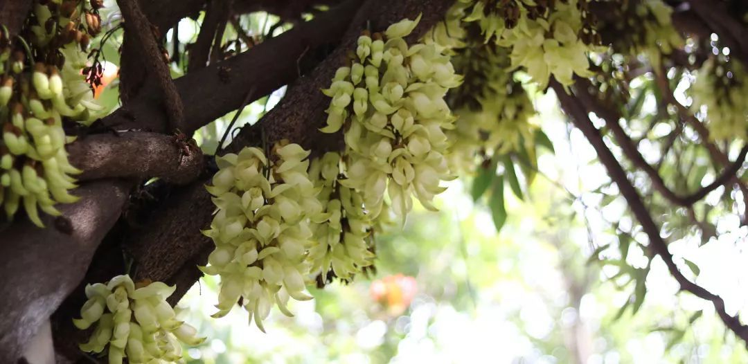 带有浓烈气味的禾雀花在藤蔓上吊挂成串,
