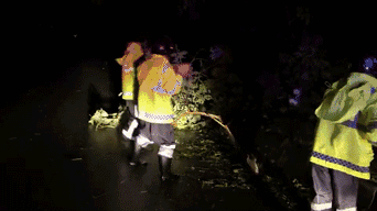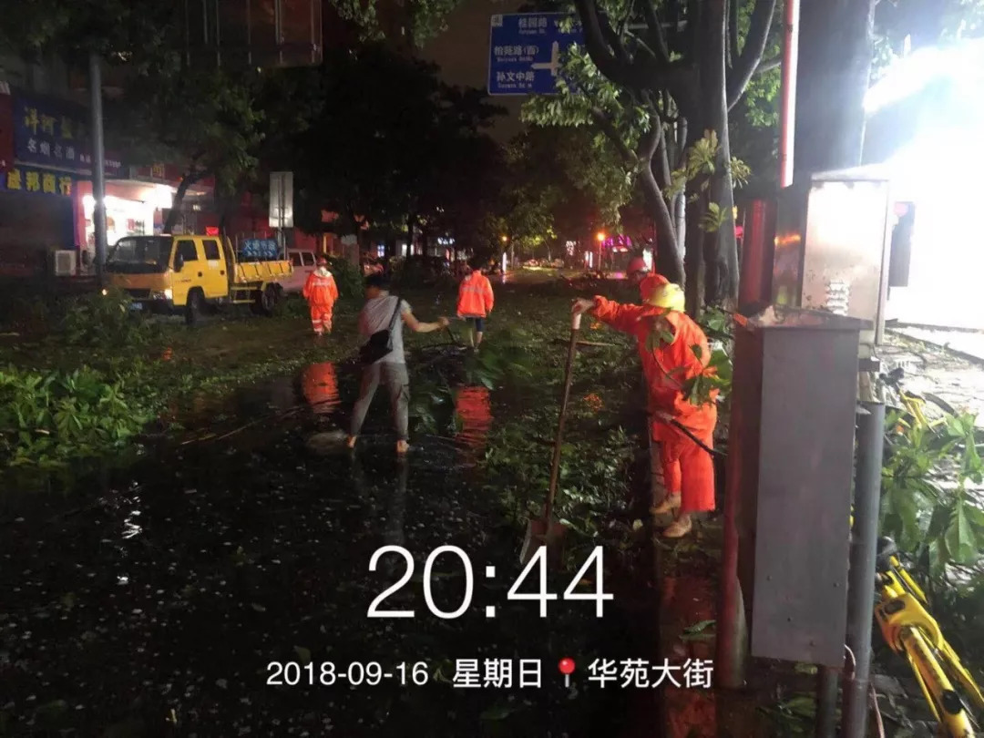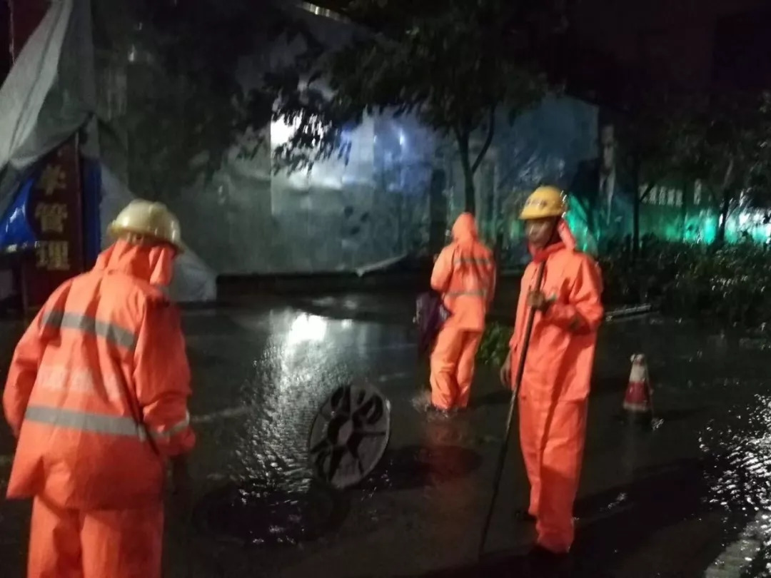 ▲市住建局市政人员连夜清理积水和倒树,让市民能早日恢复正常出行