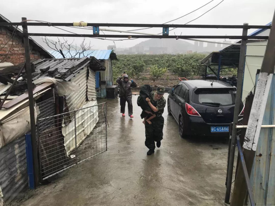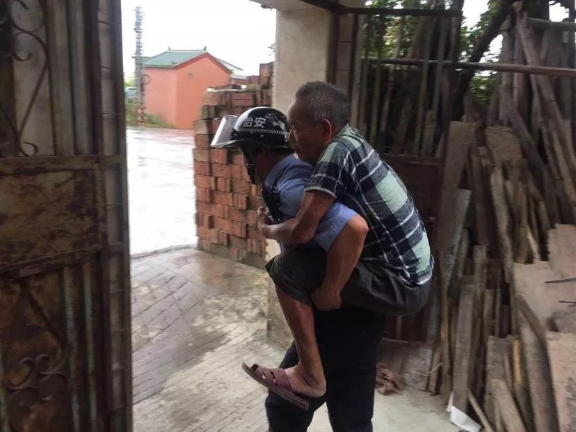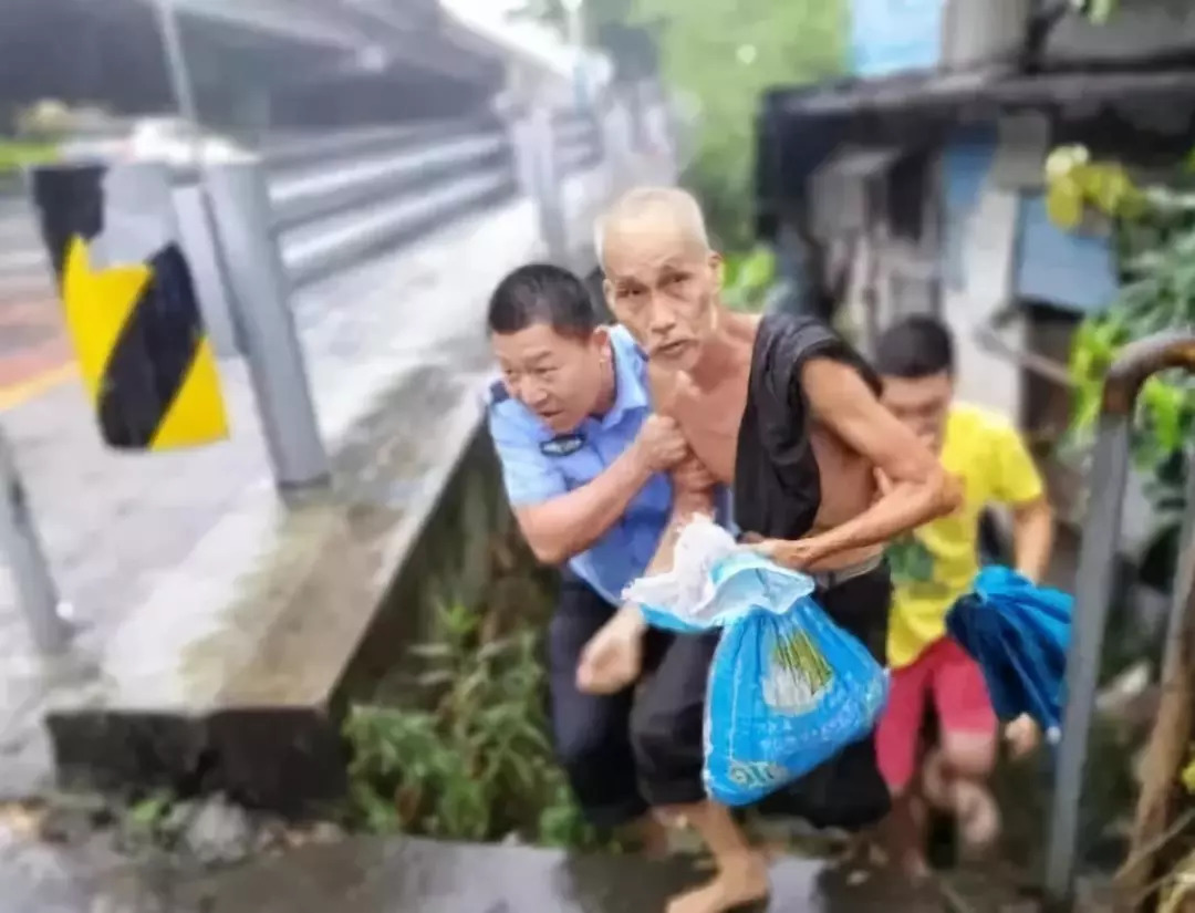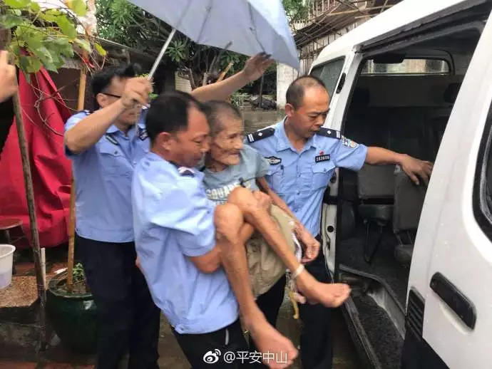 中山公安挨家挨户走访,护卫群众到安全地方避风。