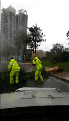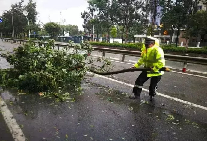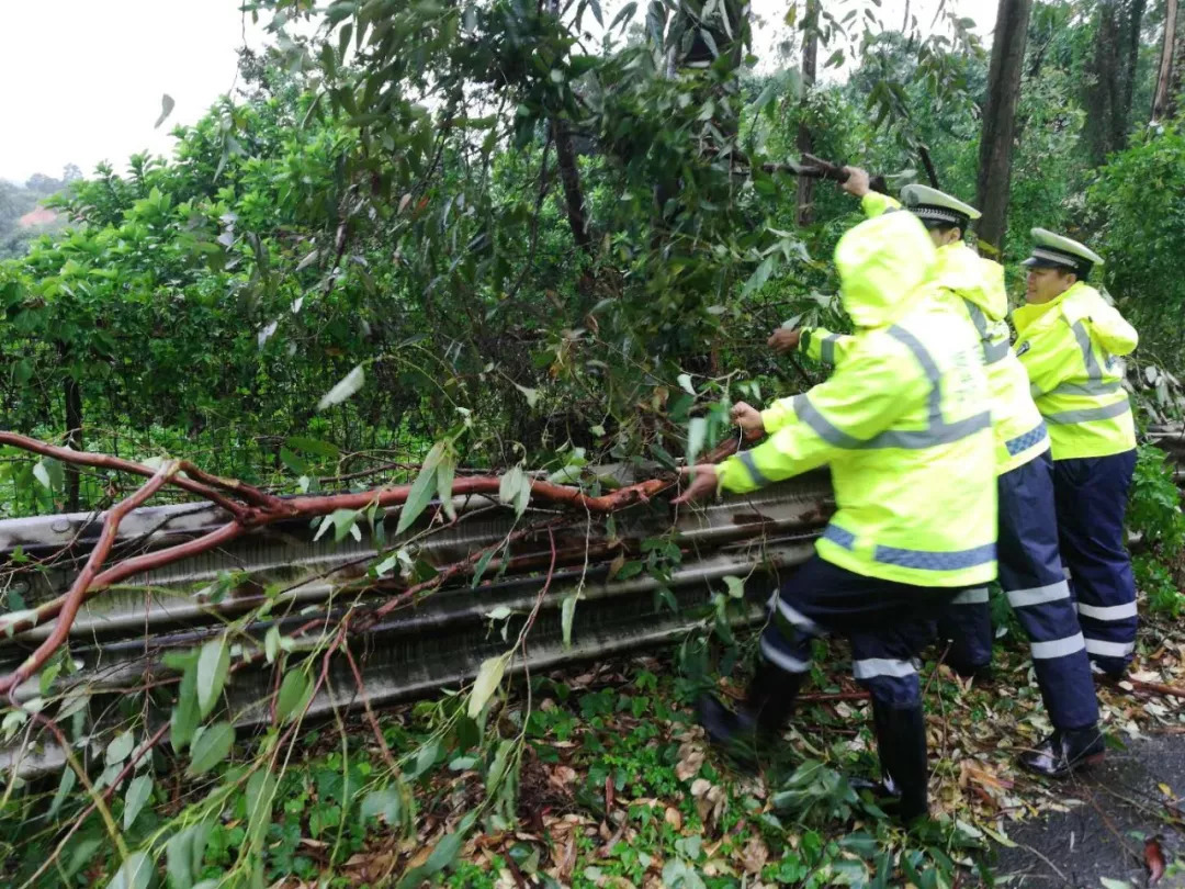 中山交警全员上路,指挥疏导交通,排查各主干道、高速公路临水、临崖路段的交通安全隐患,清理被大风吹倒横在路上的树木及交通设施,加强路面巡逻,及时劝阻路面群众撤离,以确保人民生命财产安全。