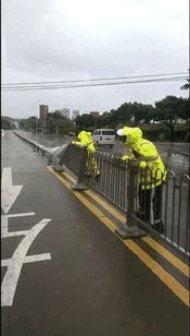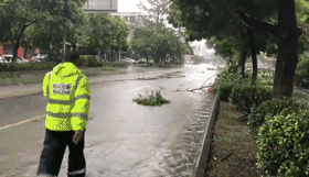 看这群在风雨中忙活的交警叔叔