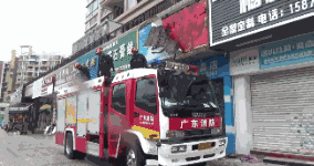 今天上午9点多,坦洲有商铺的广告牌摇摇欲坠,接警后,消防赶赴现场处置,将广告牌转移到安全位置。