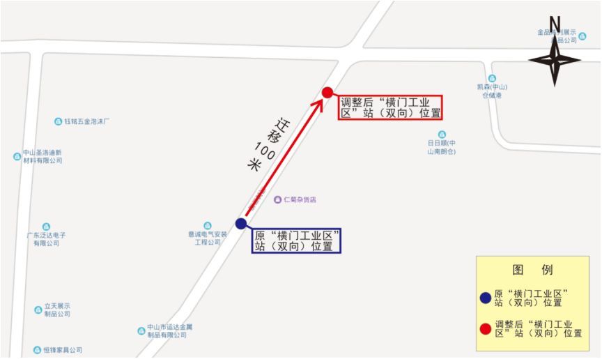 为了方便横门工业区厂企的员工及周边市民公交出行,即日起公共汽车083、023路线途经的“横门工业区”站(双向)位置将往横门方向迁移约100米设置。线路的车辆投放、服务时间、班次密度等均保持不变。
