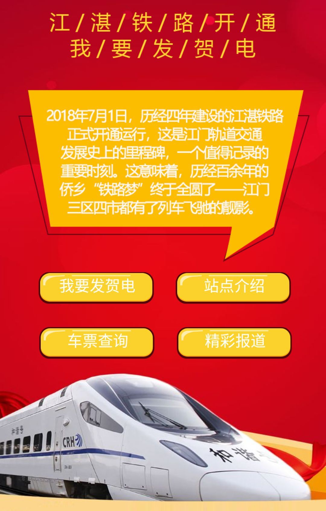 为江湛铁路通车量身定做的一款H5产品