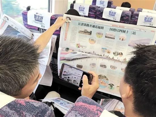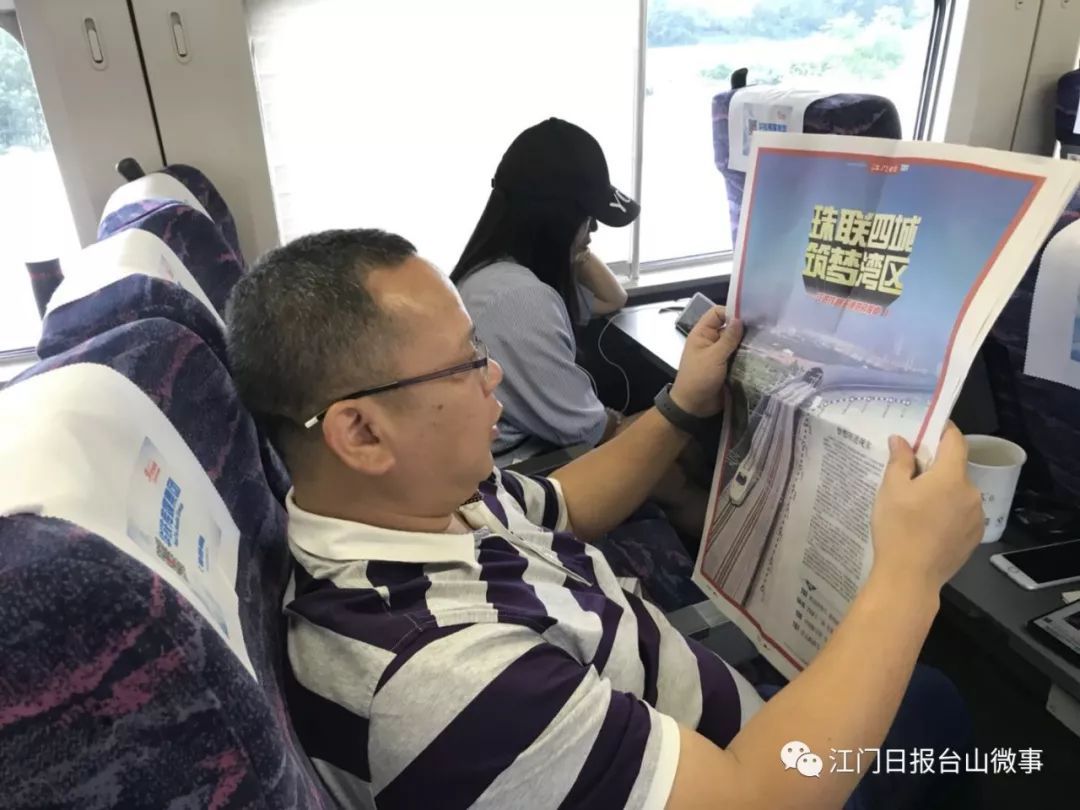 在开通后首列D9741次列车上,江门日报全媒体报道组将特刊分发给乘客,有些乘客拿到报纸后认真阅读,有的则用手机拍下有用的信息,作为今后游玩的指南。