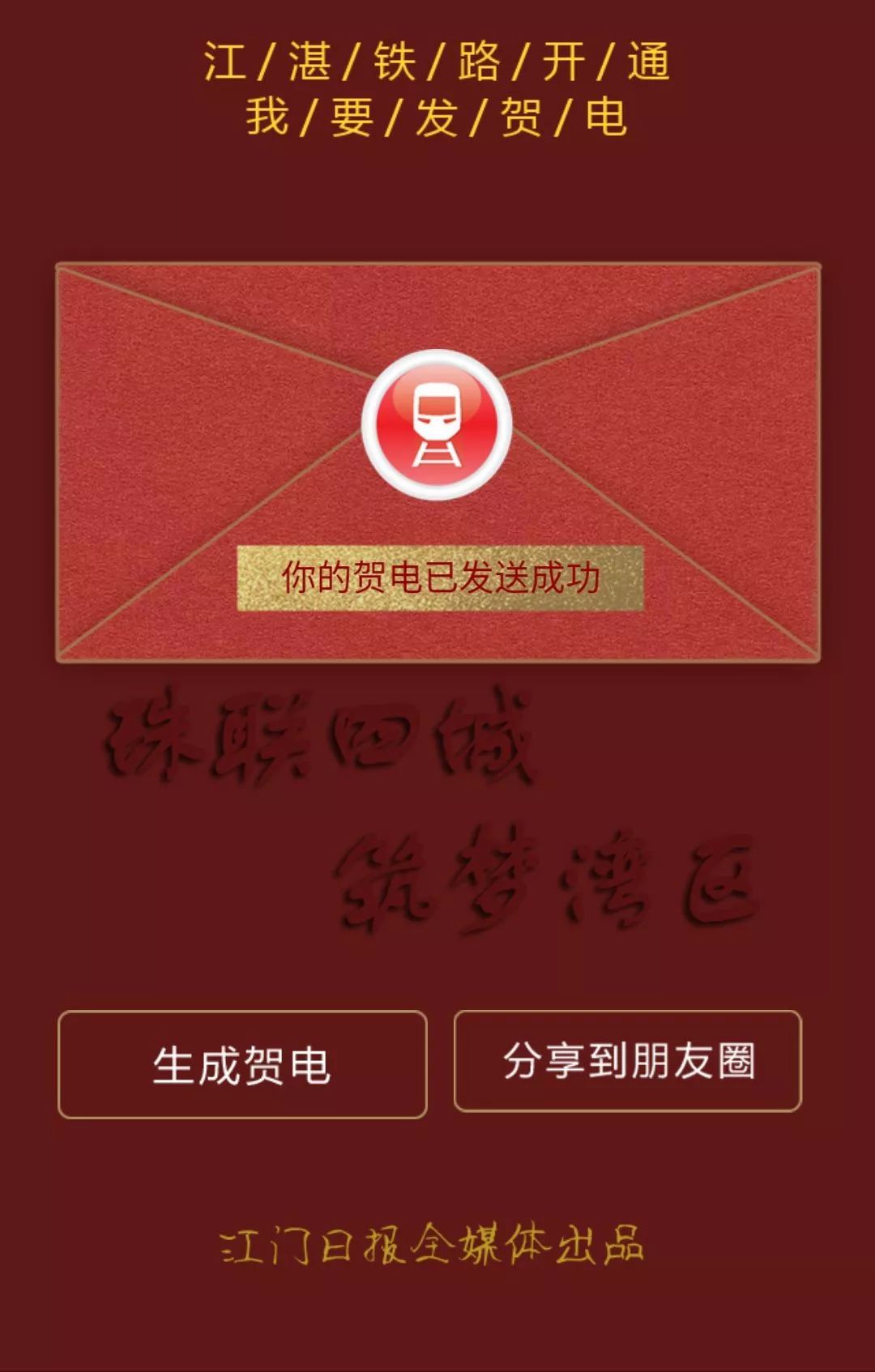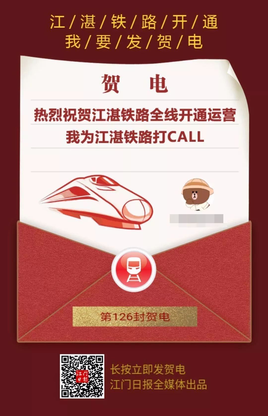 这是为江湛铁路通车打call的贺电