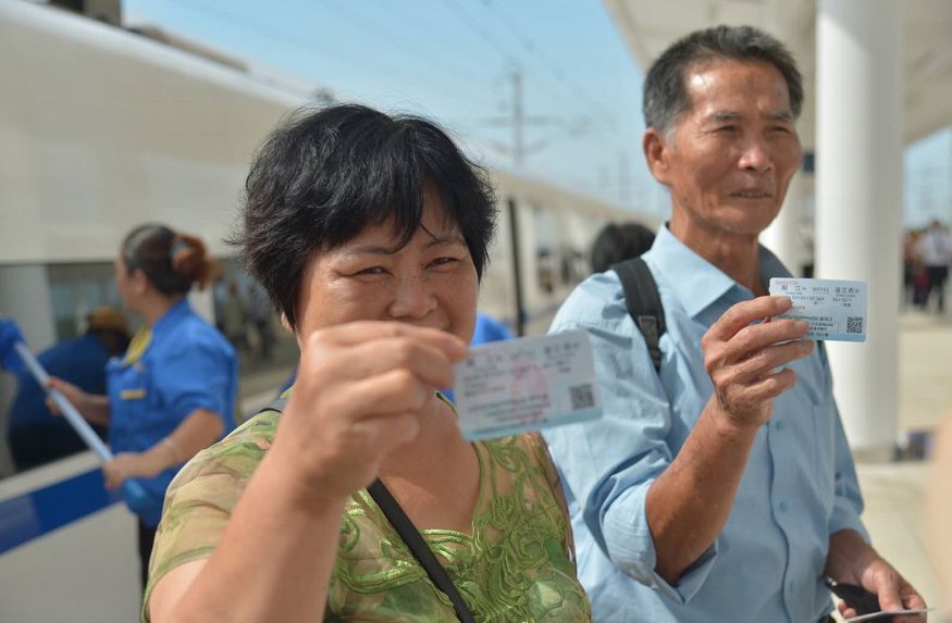 双水镇站开通,不仅让双水镇进入崭新时代,也圆了当地很多中老年人的“动车梦”。记者在双水镇站售票处看到很多老年人带着家人或者朋友一起过来买票,他们中很多都是第一次乘坐动车。今年62岁的范素珍就是其中之一。“这是我第一次坐动车,买了去阳江的车票,准备去看望那里的亲戚,家门口来了动车,必须体验下。”范素珍说。(林润开)