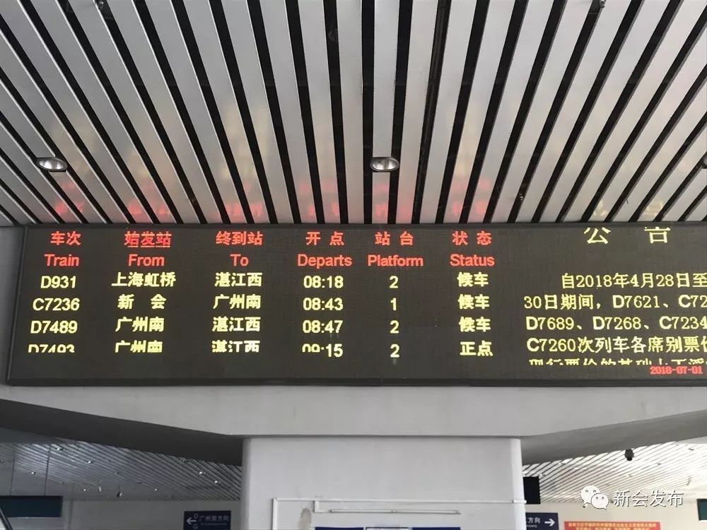昨天7:28,D921次列车抵达新会站,该列动车从北京西开往湛江西,这是首列从北京西直通新会的动车。在新会站,记者采访到了从北京出差回来的钟女士。她于6月30日8:20乘坐D909从北京西到广州南,然后于7月1日转D921次列车到新会。“没想到D921次列车的始发站也是北京西,该车次出发时间为8:30,如果我迟10分钟订票的话,就可以乘坐D921次列车,直达新会了。”钟女士表示,今后去北京出差,就不用再从广州南转车了,会方便很多。