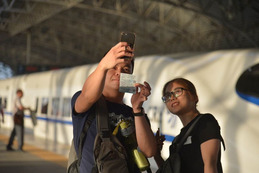 江湛铁路昨日正式通车,台山站终于掀开神秘面纱,正式开门迎客。当日,不少台山市民特意提前购买了火车票,感受火车在家门口通行的喜悦,体验坐动车出门。