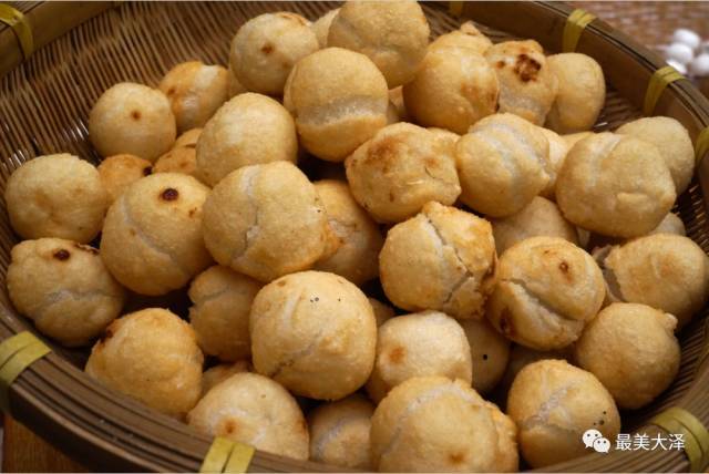 大泽最具特色小吃——糍仔,趁热的时候咬一口,金黄的糯米粉表皮包着泛白的二皮,二皮又裹着洁白的爆米花,表皮香且脆,二皮韧又糯,“心花”甜蜜,糯香、麦香、花香在齿颊留连太美味了!