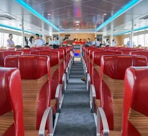 据了解,该船最多可载客199人。客舱内照明使用了LED可变色灯条,分布平均,感觉舒适。客舱内有经济客舱、豪华客舱以及贵宾房,旅客届时可根据需要进行选购不同的客舱座位。