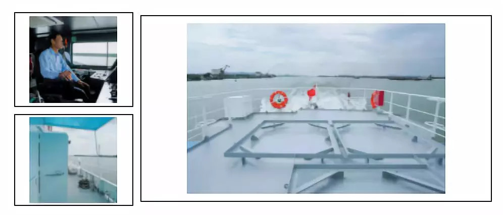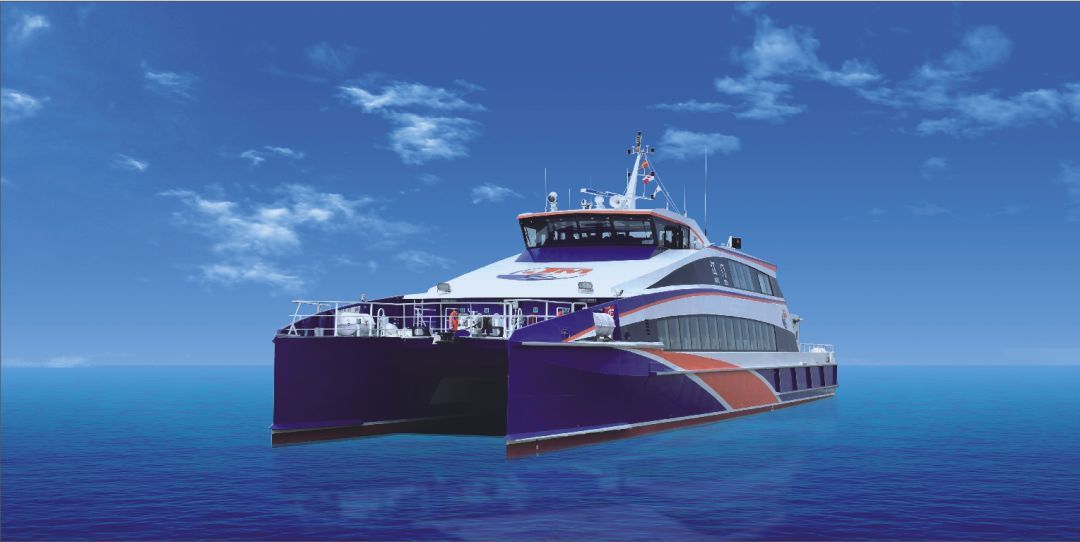 从外观上看,新建的“江门”号高速客船是一艘铝合金双体喷水高速客船,大约40米长,船体在视觉上颇具冲击力,包括蓝、白、橙、红等多种颜色。
