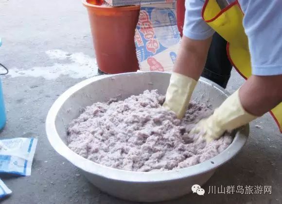 制作虾酱一般选在冬季,而且必须选用干毛虾。先把10:1分量的虾和食盐拌匀,浸入缸中,用木棒搅拌捣碎。