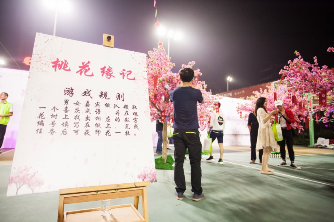 活动现场设置了缘分区、主舞台、桃花缘记区、游戏区、兴趣部落区、红桌情缘区、红娘热线区等区域。