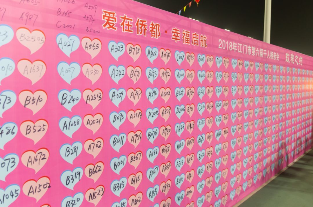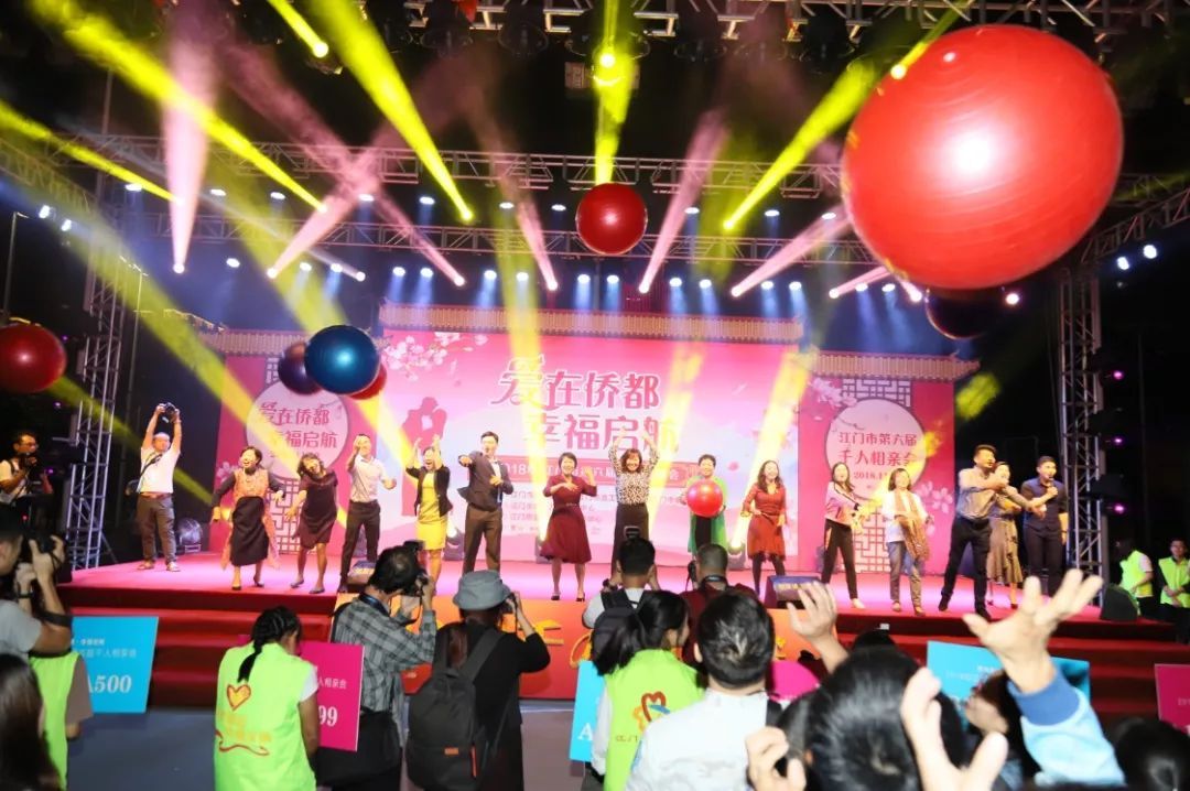 昨晚(11月10日),由江门市妇联、市总工会、团市委联合主办,市妇女儿童活动中心承办,市金百合家庭服务中心协办的“爱在侨都 幸福启航”----2018年江门市第六届千人相亲大会在元宝山体育公园篮球场隆重举行。活动吸引了近2000名男女青年参加,当晚418对男女成功牵手。
