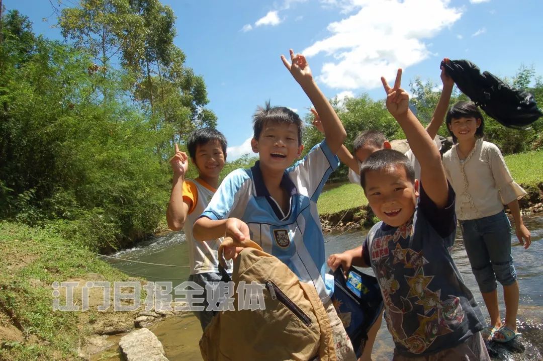 2006年8月底,我市农村免费义务教育全面启动,这项政策使37万多名农村学生受益。8月31日,开平市大沙镇西水小学学生们在河水中把书包洗干净,迎接新学期的到来。
