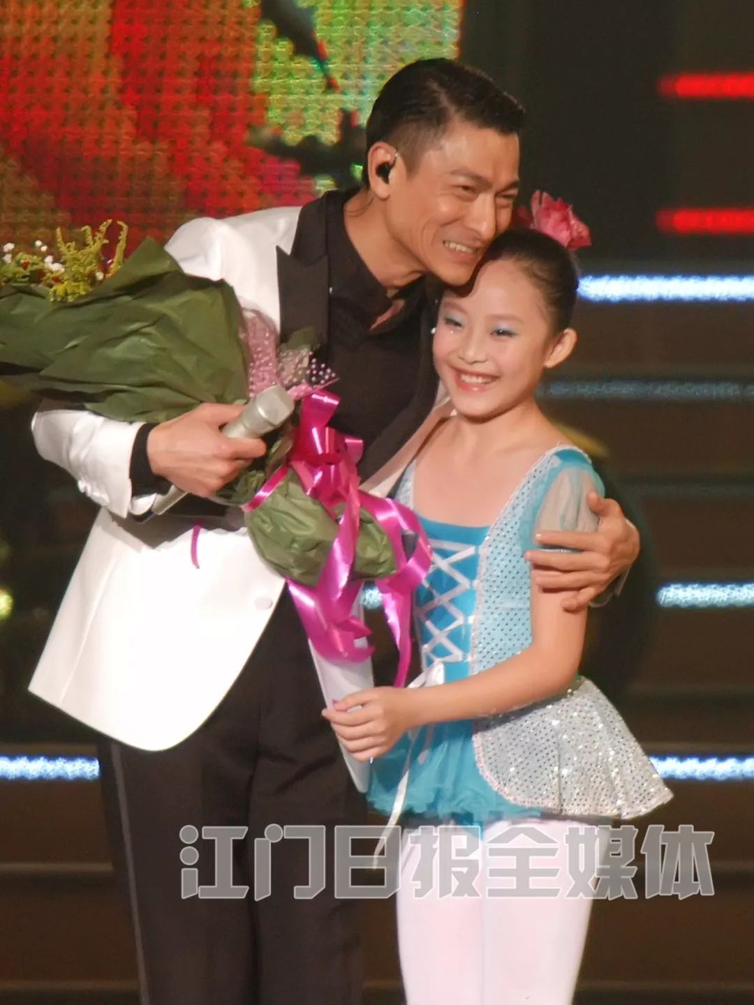 2010年中国(江门)侨乡华人嘉年华“群星闪耀江门情”综艺晚会上,刘德华开心地拥抱送花的小女孩。