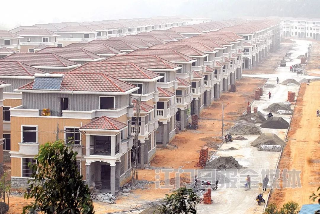 2007年12月,会城街奇榜村整村搬迁住别墅成为全市之首,首批68户村民摇珠分到别墅。图为奇榜新村别墅。