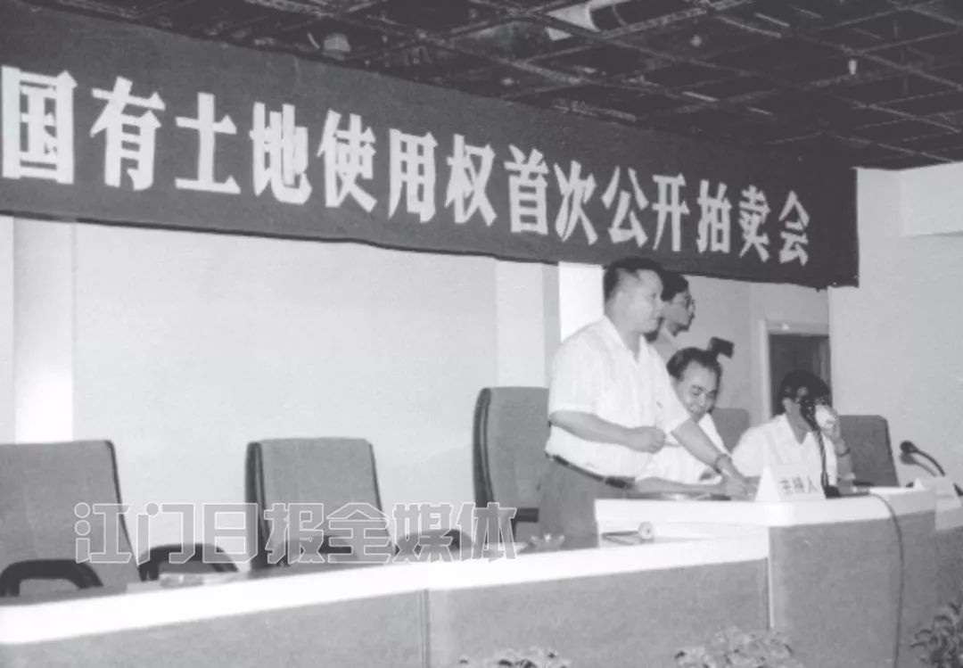 1992年7月28日,江门市以公开拍卖方式出让江门市区两块土地的使用权,这也是江门市首次公开拍卖土地使用权。