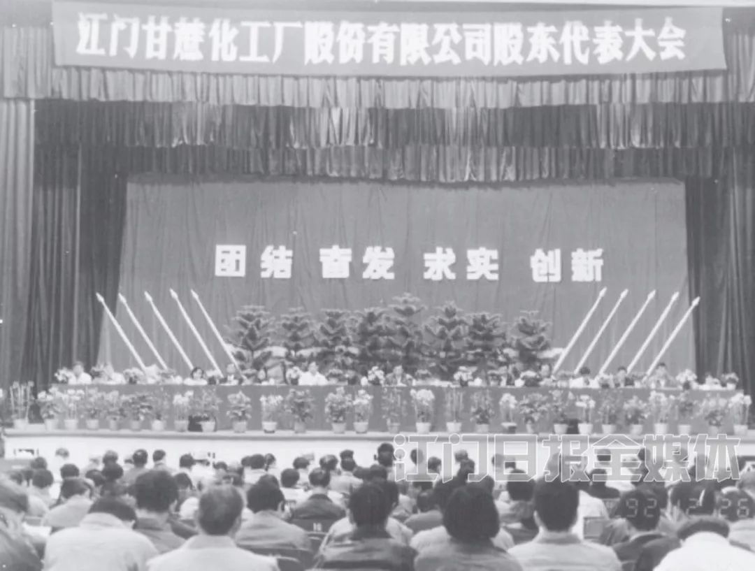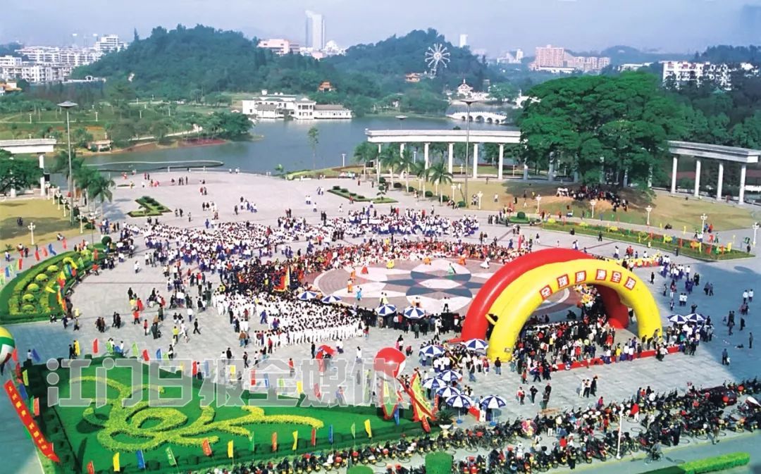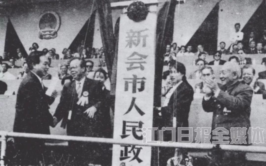1992年10月8日,经国务院批准,新会撤县设市(县级),由广东省之下,广东省政府委托江门市代管。图为1992年11月10日新会市正式挂牌的情景。