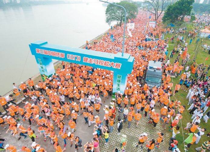 2015年11月21日上午,我市史上规模最大的健走马拉松大赛——第三届中国侨都(江门)健走马拉松大赛在三区四市7个赛场同时开赛。热情、欢乐、坚韧、健康的文明城市风采涌动五邑,把全市紧紧融合到了一起,演绎出了一场全民参与的“健身狂欢”。
