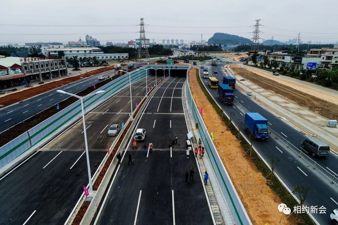 昨日上午,江门大道五邑路至三江段(除珠西综合交通枢纽江门站下穿1.4公里段外)、银鹭立交至小冈大桥段正式完工通车,标志着新会区在通往广佛都市圈的快速黄金通道建设上又迈进了一大步。
