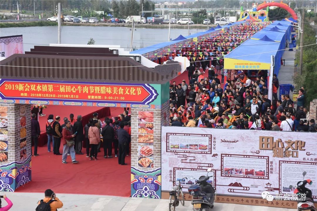 新会双水镇举办第二届田心牛肉节暨腊味美食文化节,不仅有牛肉、腊味让游客品尝,还有当地“村落+土特产+精彩表演”让游客尽情体验。“笑虾虾”2018大鳌镇水乡风情旅游美食节和江门市民运动大会大鳌环岛马拉松赛,在风景秀丽的大鳌镇东风村同步举行,美丽的水乡风情、丰富多彩的文体活动,吸引了数万名市民游客上岛乡村游。元旦当天,新会石板沙还举办特色乡村音乐会,精彩的演出吸引众多游客前看观看。
