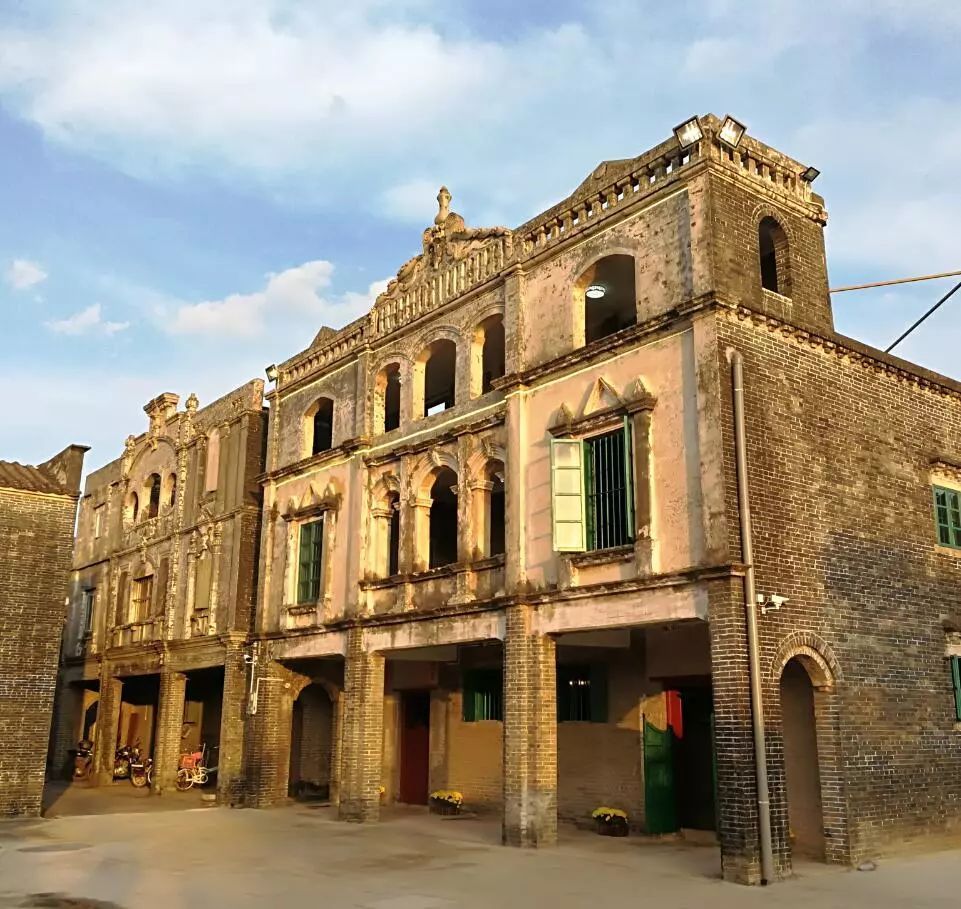 三泉湾改造开发的洋楼位于村西南角,屋前有一大块空地,旁边是小河与大片紫薇树。这栋洋楼高三层,外观是罗马式建筑风格,又不失岭南建筑的文化内涵。由于洋楼有近百年历史,改造时特意进行了可逆转加固修复。