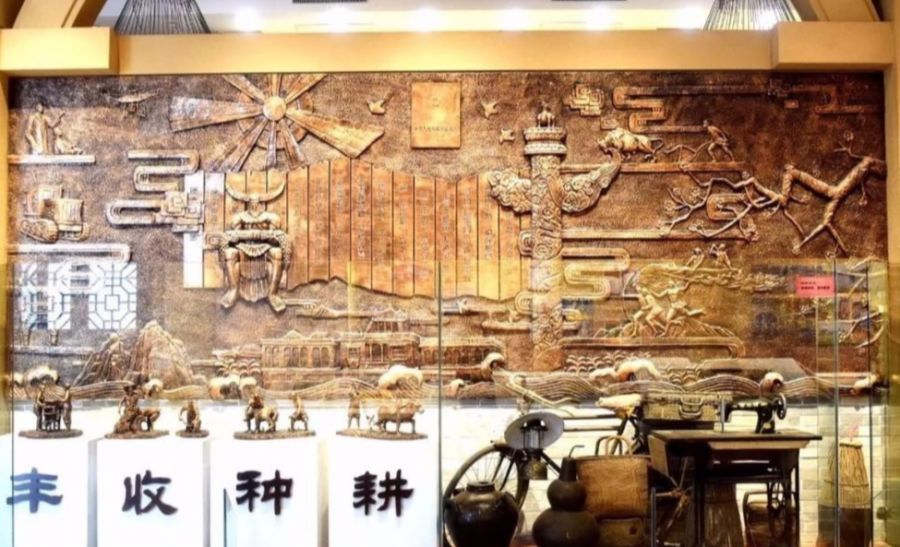 农耕文化展示馆,以岭南建筑风格为特色,分为广场区、神农氏雕像、展馆、观景平台,是五邑地区规模最大、最具特色的农耕文化博物馆。展馆还通过图文、雕像、实物、壁画、多媒体互动等手段,勾勒出一幅立体的农耕文化全景图。