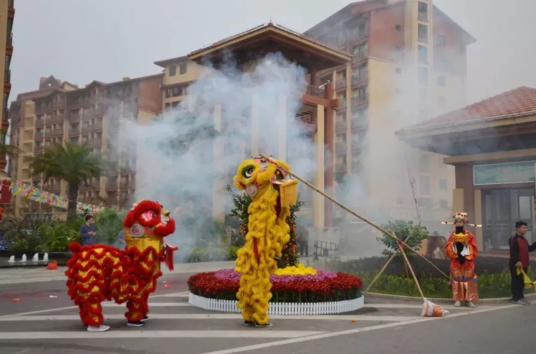 鹤山龙腾狮舞喜迎猪年新春,百头醒狮齐舞贺新春,百米金龙巡游庆丰年,在猪年新春向全市人民送祝福,送吉祥。恩平爱必侬泉林酒店那金谷景区举办“醒狮大巡游”活动,还有美食街、艺术长廊等地方有吃有喝,游客在此度过了一个欢乐祥和的假期。