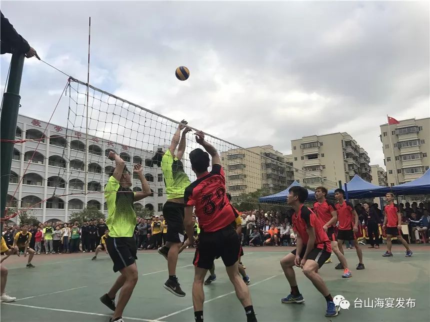 春节期间,台山市海宴镇为丰富春节期间的群众文体活动,增加节日气氛,让群众度过一个祥和、幸福的春节,特别举办“嘉旺杯”男子九人排球赛,共吸引近千名游客观看。