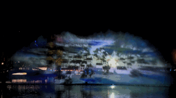 新会区圭峰山玉湖景区3D喷泉投影灯光秀,3D灯光效果结合新会本地特色,惊艳了现场观赏的游客。