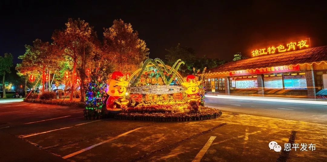 蓬江区万达广场及江海区城央绿廊的灯光秀,五光十色的灯光与周边建筑物交相辉映,尽展侨乡城区魅力。蓬江区万达广场以“佩奇陪你过大年”为主题,小猪“佩奇空降”万达广场,游客和佩奇合影、玩耍,寓意猪年一定啥都能“配齐”。