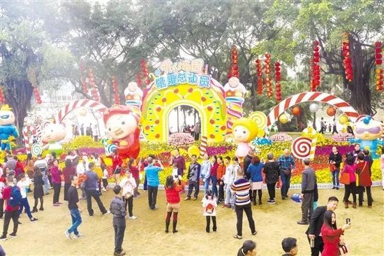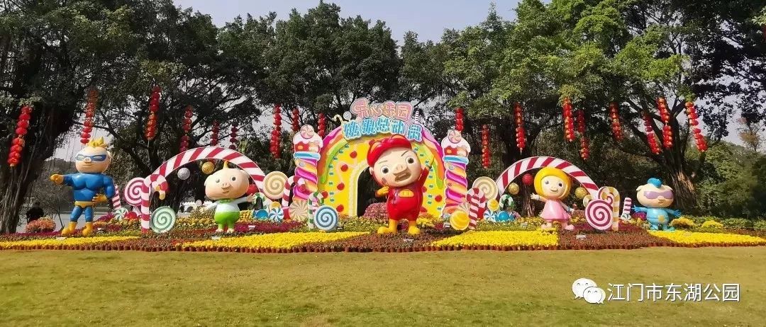 蓬江区东湖公园向来都是市民节日假期游玩的热门地之一,春节期间精心布置的花海世界带给游客新的体验。