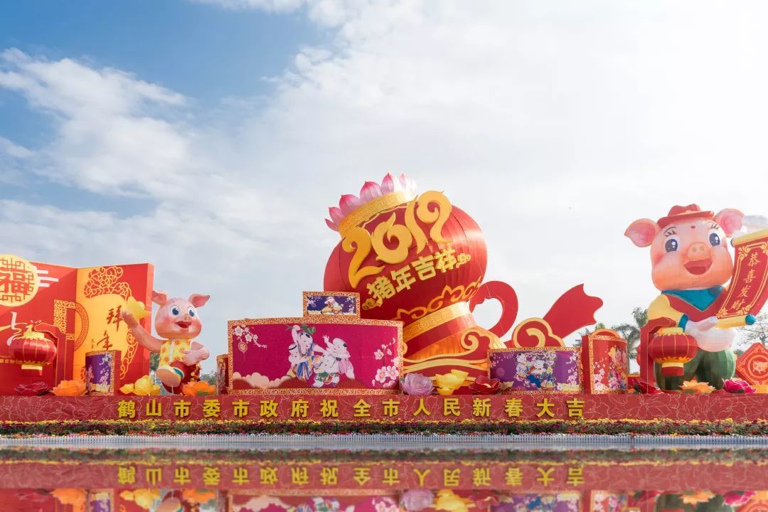 鹤山公园“猪年吉祥”的大型新春灯饰喜庆而美观